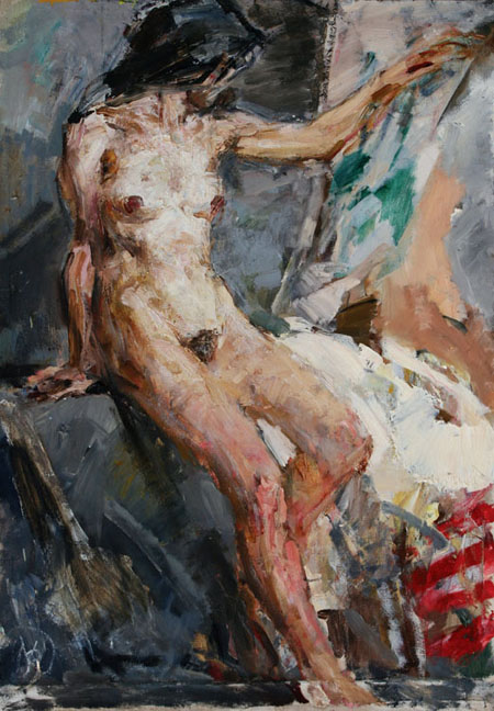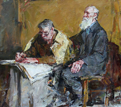 Именно такому образцу искусства, почерпнутого из жизни и обращенному к людям, отвечает выставка из фондов факультета за много лет. Бросьте первый самый общий взгляд на нее, затем рассмотрите детально – работу за работой. Вы увидите, что в целом и в частности, от скрупулезно выполненной учебной постановки на младшем курсе до дипломной композиции, завершающей труды и дни студента в вузе в течение шести лет, — во всем мы ощущаем активно бьющийся пульс жизни. Жизни, понимаемой разнообразно и широко. Это душевный характер, социальный тип, метко увиденный уже в академическом портрете; это темпераментно воплощенная красота природы в пленерном холсте. Это мощное хоровое звучание в народной сцене или пронзительный психологизм драматической сцены в содержательно наполненной дипломной картине. Перед нами проходит русский человек в истории и современности, в деревне и городе, во время труда и праздника и т.д. и т.п. Обобщенно говоря, всё и вся в этой экспозиции – грани великого разнообразия земного бытия и неисчерпаемых глубин человеческой души. В бесконечности жизни и постоянном обновлении кроется принципиальная и потенциальная извечность реализма. Реализм – он поистине без берегов. Он необходим человечеству как средство своего самопознания. Потребность в нем нескончаема.