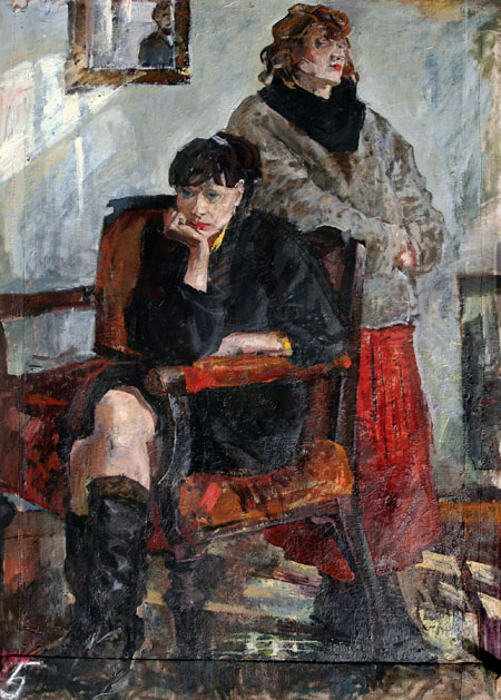Хотя женского присутствия среди персонажей представленных на выставке произведений явно не хватает. И это странно. Не нужно быть художником или искусствоведом, чтобы ясно себе представлять, что выпивка, женщина и искусство — это, можно сказать, три грации, танцующие всегда вместе. Жаркая роза алкоголя расцветает только при наличии всех этих составляющих. Как-то веселого и мудрого питерского писателя Валерия Попова спросили: чем лучше закусывать? На что он со знанием дела ответил, что женщиной. И добавил: «Без женщин выпивать, кстати, — абсолютная потеря смысла. Ну напиться, а куда все это деть потом — безмерное обаяние?!»