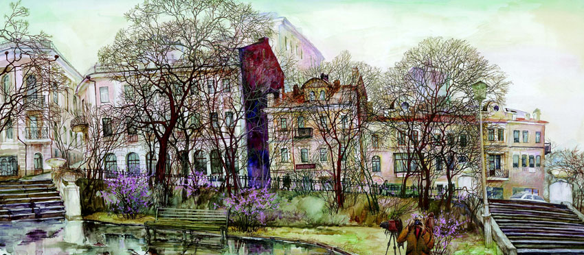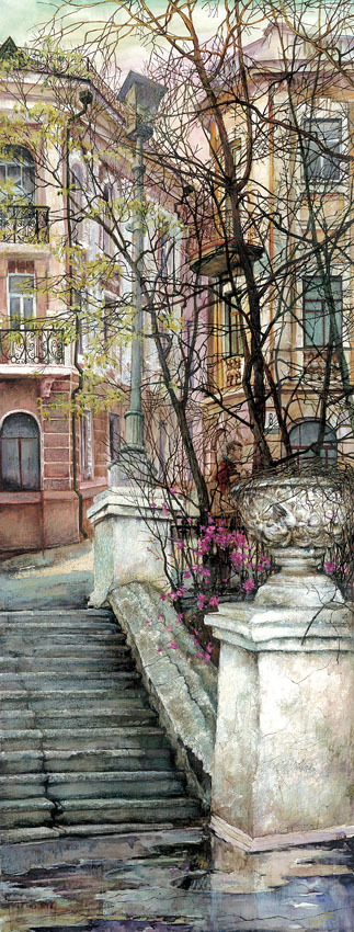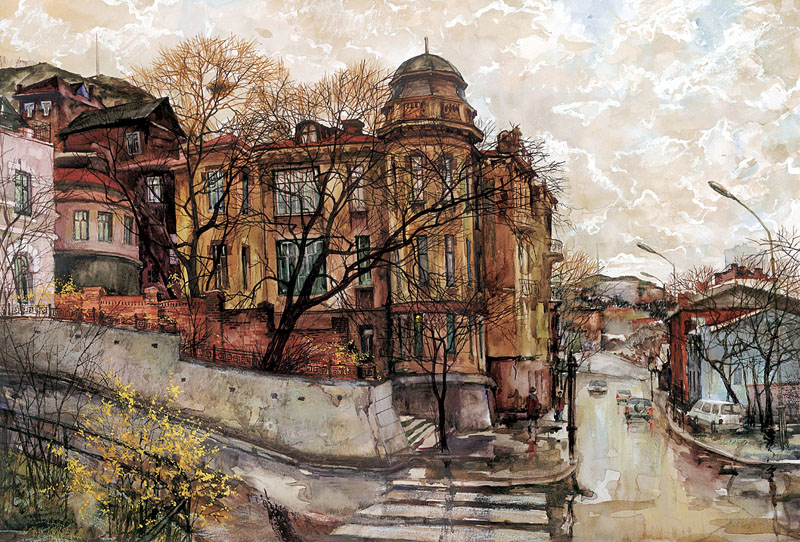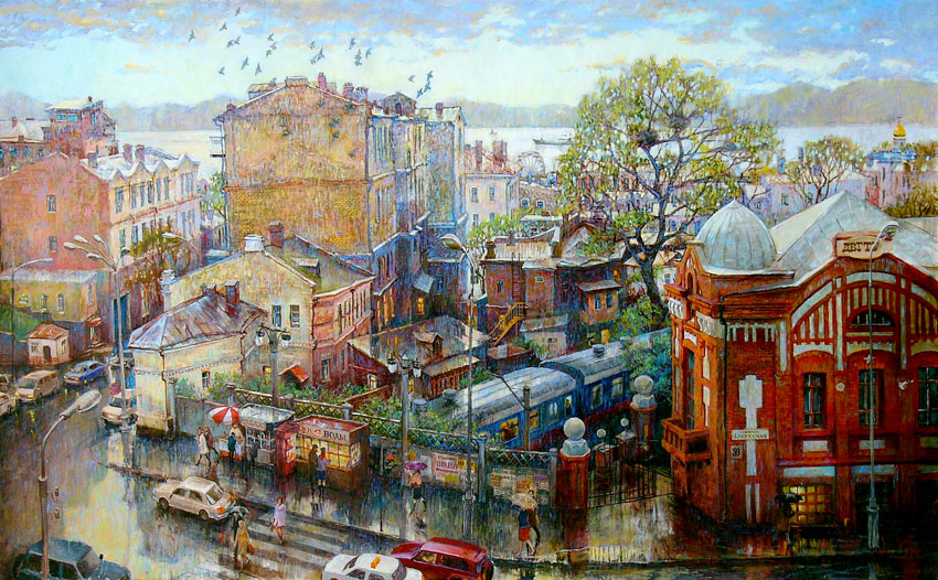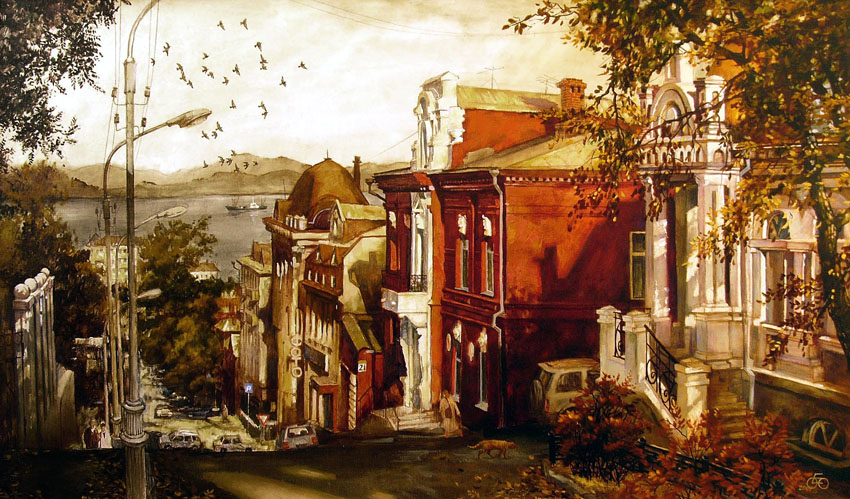 Продолжаем, начатую в январе, серию пейзажей Владивостока Евгения и Оксаны Осиповых. Сейчас город изменился. Зимой он камерный, что-ли, как комната в вашем доме. Весной он разворачивается и выгибается, как вы выгибаете дольку апельсина перед поеданием. Пространство, как будто, становится шире, небо выше, приходит новый воздух, новый соленый дух. Часто пахнет морем, новыми листьями и весной.