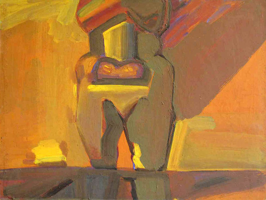 Работы Виктора Фёдорова, мне кажется, передают это ожидание. Неминуемая встреча женщины-бури, женщины-судьбы. Однажды сыграная игра теперь не даёт покоя. Женские образы, если всматриваться в них, сливаются в нечто единое, как будто все они просто череда масок одной природы. То ласковая она, то грозная, то повёрнута вполоборота. Их объединяет всегда мягкий цвет, простота, лаконичность движений, много чувственности, много любования.