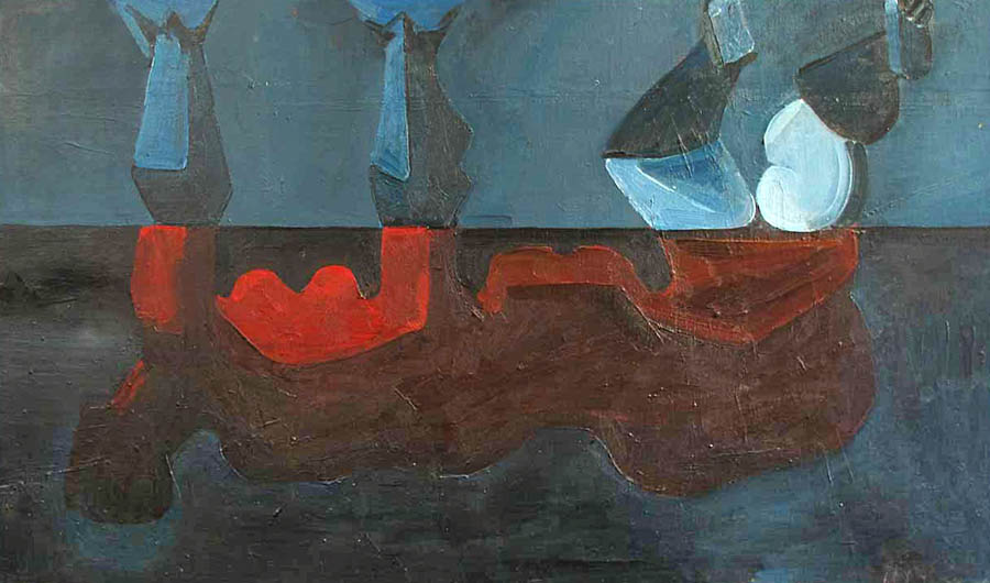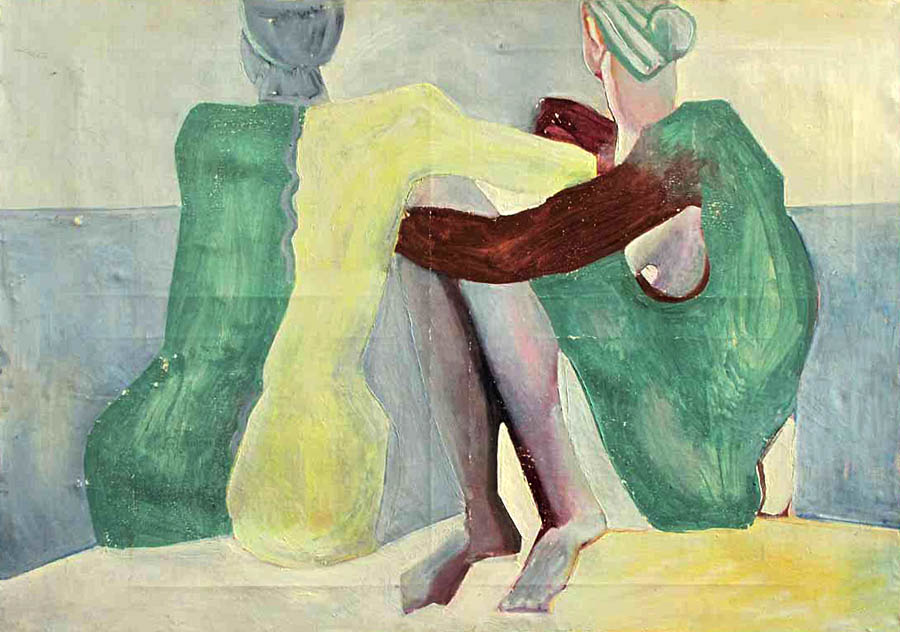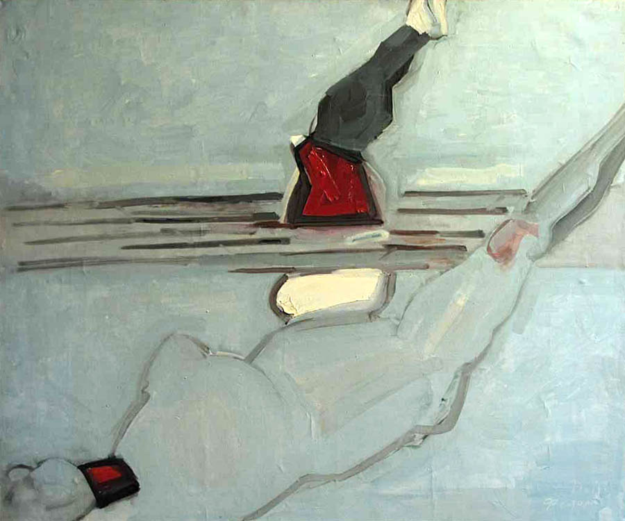 Это собрание разных годов, с промежутком примерно в 20 лет. А это не мало. Но за это время художник остался верен авангардному стилю, иногда уходя больше в абстракцию, иногда чуть в сюрреализм, но всё равно его почерк и стиль всегда узнаваемы. Колорит, техника, пространство. Но это не всё, что отличает творческую манеру автора. Его отличает любовь к женским образам и водной глади. Возьмём хотя бы названия картин: «Плывущая», «Ныряльщицы», «Женщина у моря». Образы женщин и воды, как музы, всегда присутствуют на его полотнах. Присутствуют по-разному, это и буквальное море с чайками, и абстрактное водное пространство. А женщины. Они то медитативно плывут, то смотрят с полотна на зрителя или просто ждут у моря, иногда художник оставляет только момент, только намёк, едва уловимый образ.