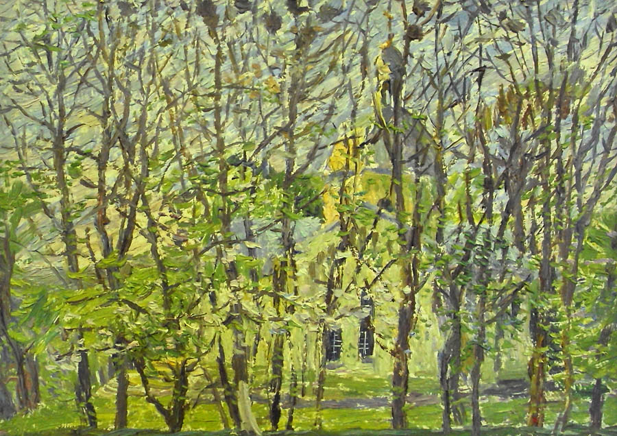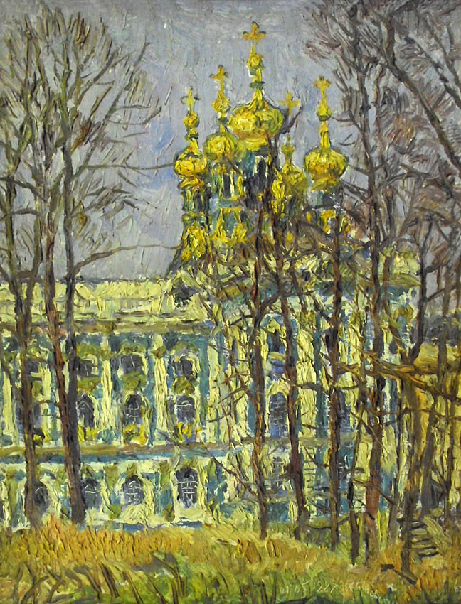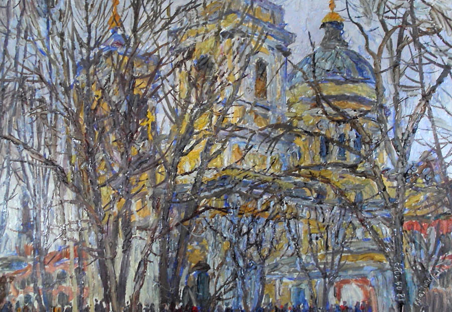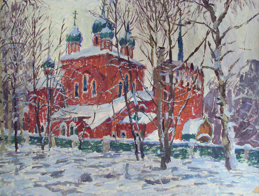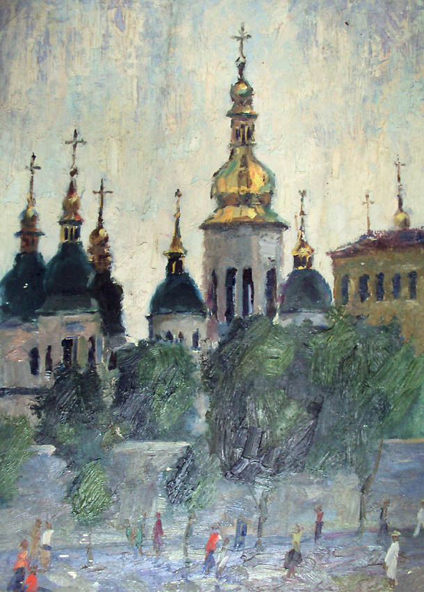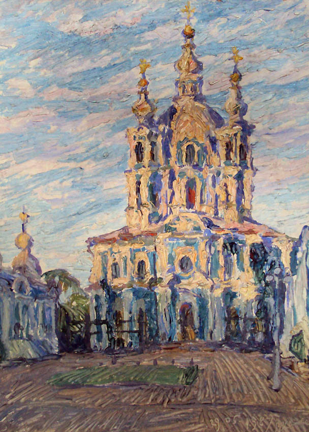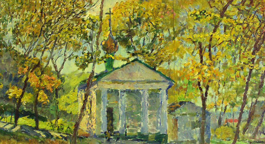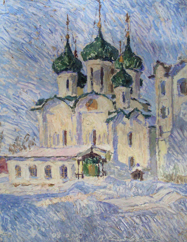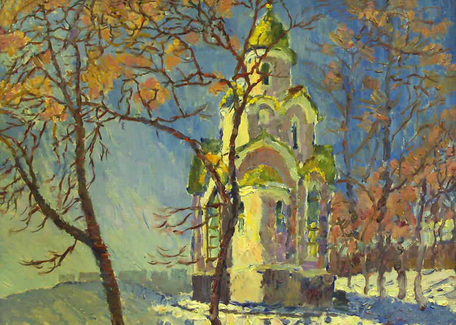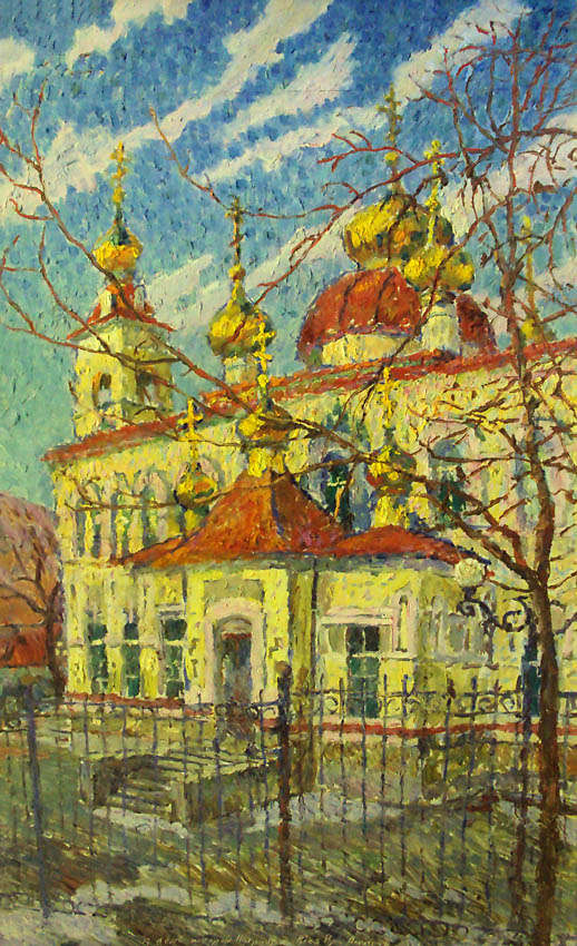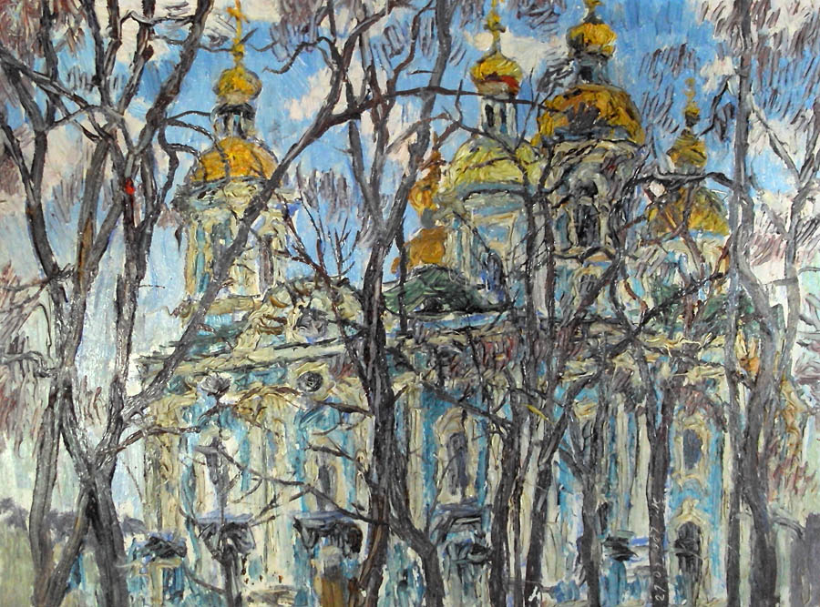 Смольный монастырь, Александро-Невская лавра, церковь Екатерининского дворца в Царском селе, Собор у Балтийского вокзала, Исаакий, церковь на Мойке в Ленинграде, церкви Нижнего Новгорода, собор Василия Блаженного в Москве, часовня Святой Татьяны, храм Серафима Саровского, храм Казанской Божией матери, собор Успения Божией матери, Покровский храм во Владивостоке… Работы фиксируют не только памятник зодчества, но и состояние природы, времени года, времени дня. Решаются определенные художественные задачи — положить снег у стены храма, передать вечернее освещение… Однако импрессионистский подход художника позволяет создать не живописное, а в некотором смысле летописное полотно.