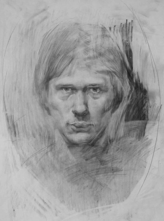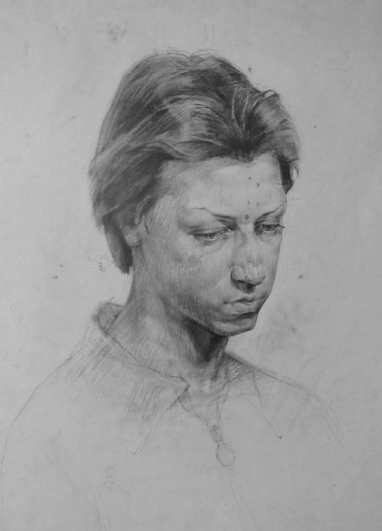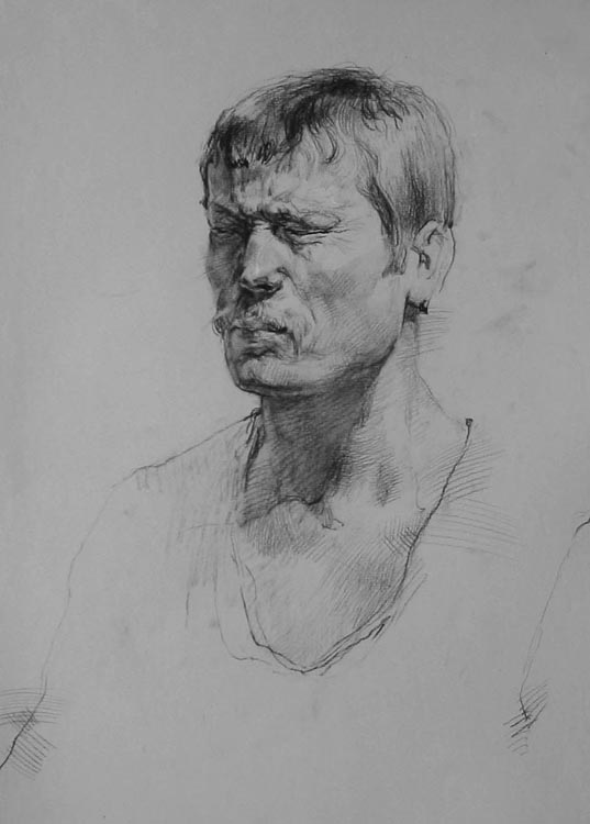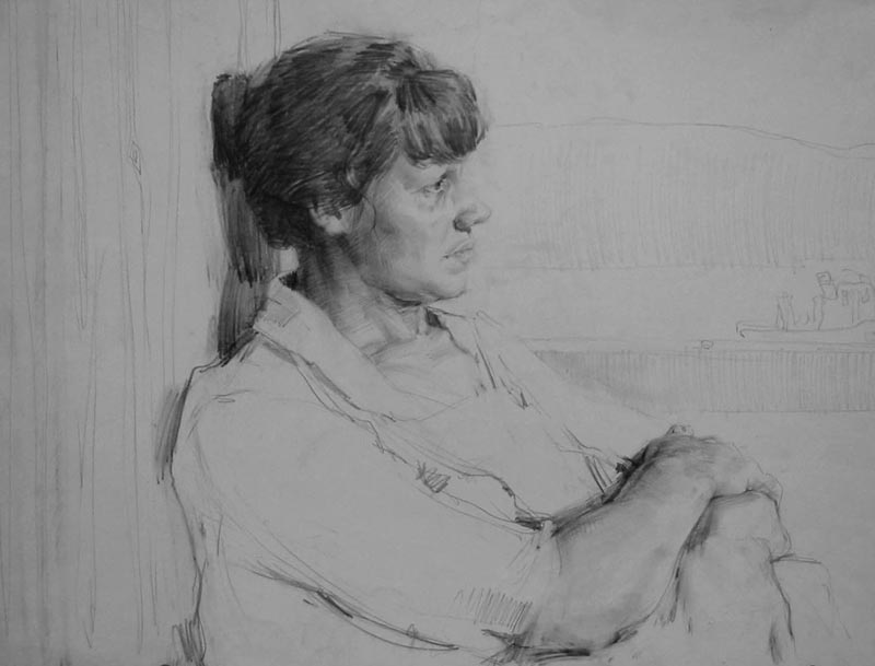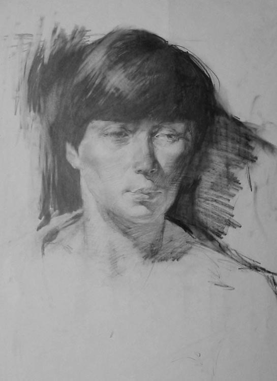 Возвращаясь к выставке рисунка, представленного сегодня, следует оговориться, что соблюдён некий жанровый подход, в основном представлен портрет. В экспозицию не вошли наброски, штудии, так называемые путевые заметки. Портретный жанр всегда занимал особе место в творчестве Евгения Макеева, поскольку в нём точнее, чем в других жанрах определяется сам художник. Модель оказывается его точным зеркалом, в котором отражаются эстетические и человеческие аспекты личности. Образ, точно найденный Иосифом Бродским в «Новых стансах к Августе» применительно к очень личной ситуации глубокого чувства к человеку, вырастает до философского обобщения, где Художник и Модель — части единого целого.