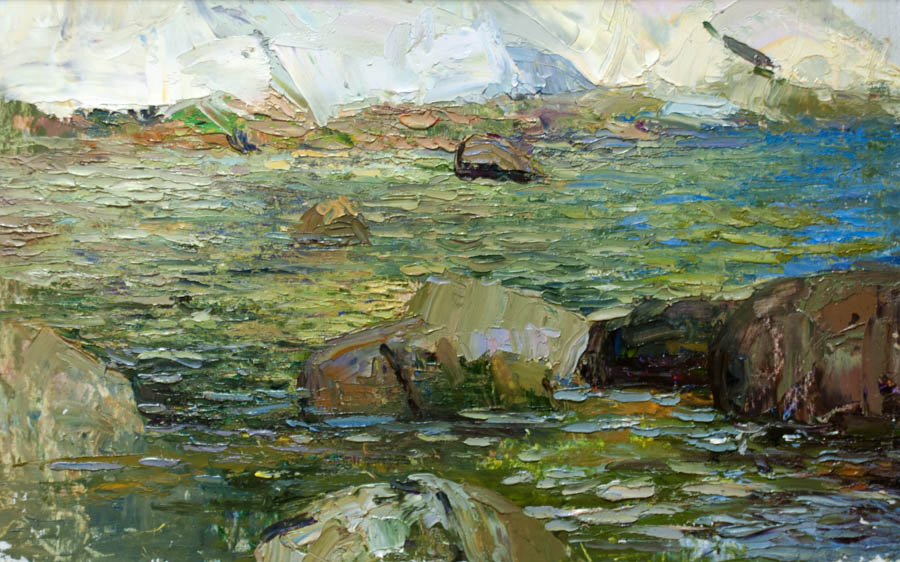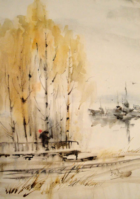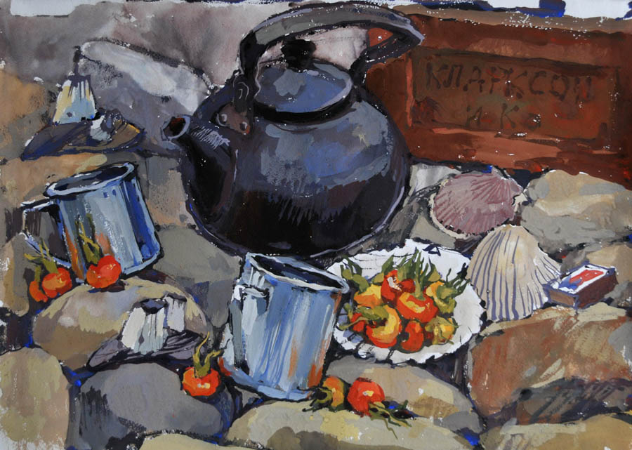 О Заслуженном работнике культуры РФ В. Чеботарёве следует сказать отдельные слова. Его искусство называют крупным художественным явлением в истории изобразительного искусства Приморья и всей России. На выставке представлены камерные по размеру пейзажные акварели, по которым судить о богатом и многогранном наследии мастера невозможно. Но именно с Чеботарёвым связана вся приморская графика (в том числе книжная иллюстрация). Выпускник графического факультета Ленинградского института живописи скульптуры и архитектуры им. И. Е. Репина приехал во Владивосток в 1960-м году и сразу же начал преподавать в Владивостокском художественном училище и участвовать в выставках самых серьёзных уровней — в Москве и за рубежом как единственный в то время график от Приморского края. С его именем связан подъём графики на высокий профессиональный уровень, без В. Чеботарева в училище не было бы графической мастерской: всем техникам, в которых художник работал сам, он учил студентов, делясь своими опытом и знаниями. В течение довольно короткого периода, от 1960-х до начала 1980-х, буквально за десятилетие формируются разнообразные направления графического искусства: оригинальная графика (акварель, пастель, рисунок любым материалом), виды печатной графики, книжная иллюстрация, плакат, сатирическая графика (шаржи, карикатура).