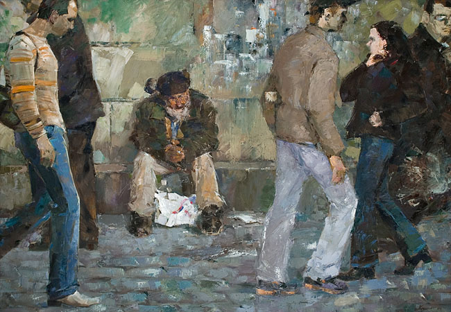 Во-первых, каждый сам для себя определяет степень голода. Я тоже долго считал, что художник должен быть голодным. А сейчас я считаю, что у художника должны быть деньги. Деньги это что? Для меня деньги – это свобода. Я спокойно передвигаюсь по миру, например, из последних моих мест проживания: Иран, несколько месяцев я провел, путешествуя по Ирану; в мае я провел две выставки одну в Вестфалии, одну в Берлине; в июне я был во Внутренней Монголии; в августе я открываю выставку во Владивостоке, потом заезжаю в Харбин на два месяца по контракту, вот вам степень моей свободы. То есть, я, в принципе, голодный, у меня нет машины, только квартира, мне нужен минимум денег, чтобы я мог передвигаться, соответственно расти, соответственно развиваться. А сидеть голодным, да ещё бравировать тем, что ты голодный – это даже степень невоспитанности. Сейчас я так считаю, на данном жизненном этапе, 5-10 лет назад я считал по-другому.
