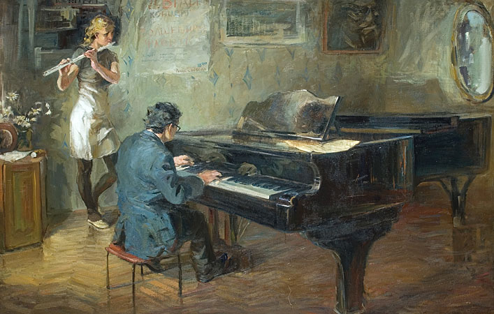 На защите комиссия оценивает композицию, раскрытие образа, темы, компоновку, колористическое решение, связанность цвета. Очень важно, чтобы не было «литературщины», то есть когда художник просто пересказывает сюжет, потому что у творца, композитора более сложная задача — выявить в теме самое главное и воздействовать на зрителя эмоционально.