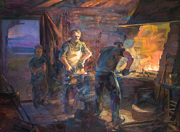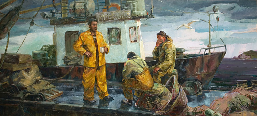 Кроме официальных залов от Берлина до Харбина у нас была однажды выставка студенческих работ на Камчатке в рыболовецком колхозе, там был «День рыбака». Варились огромные чаны с ухой, спирт лился рекой, а у нас выставка была на улице, работы стояли на таких подставочках. В моей жизни была такая выставка: вот они горы, вот они вулканы, вот она рыба красная, которая идет в реках, и тут же выставка развернута прямо на футбольном поле, где рыбаки гуляют.