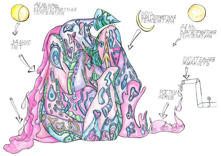Архитектор может использовать эти гениальные находки природы в своих целях. Так появились идея создания дома, который может «раздеваться» летом и «обрастать одежками» зимой, идея движения здания вслед за солнцем или от него, если оно слишком назойливо, идея растущего здания подобного живому растению или перемещающегося дома.
