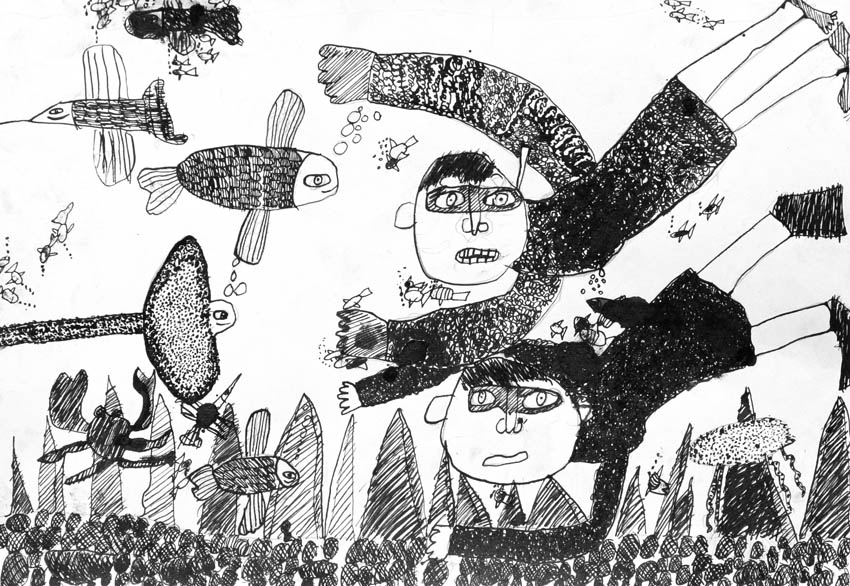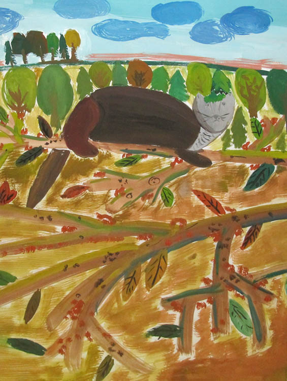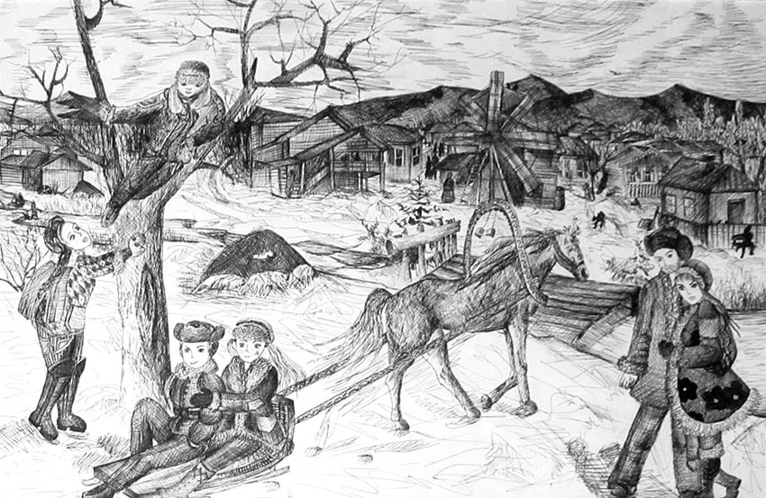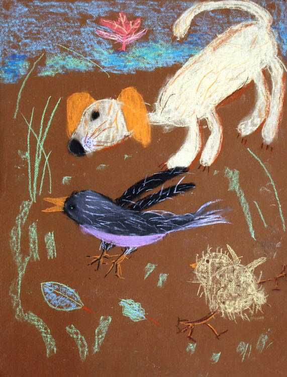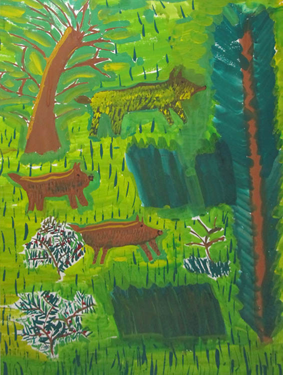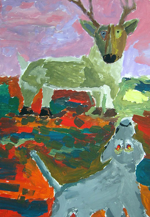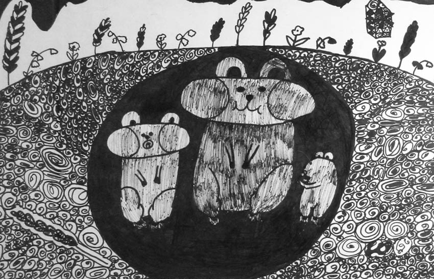 — Больший состав участников. Прислано было на конкурс более пятисот работ. Появились новые имена. Экспонируются, например, работы Валентина Чеботарёва, Анатолия Заугольнова. Украшением экспозиции стали упоминавшиеся уже графические портреты Василия Доронина. Ниже стала возрастная граница. Трёхлетняя Оленька Кириллова нарисовала такого задорного волчонка, так здорово, что смотришь и оторваться нельзя. Заметен творческий рост у других малышей. Например, порадовала Василиса Солодуненко, в третий раз предоставившая свои рисунки. Очаровательны работы Миши Лесика, у которого есть свой взгляд на мир, своя манера.
