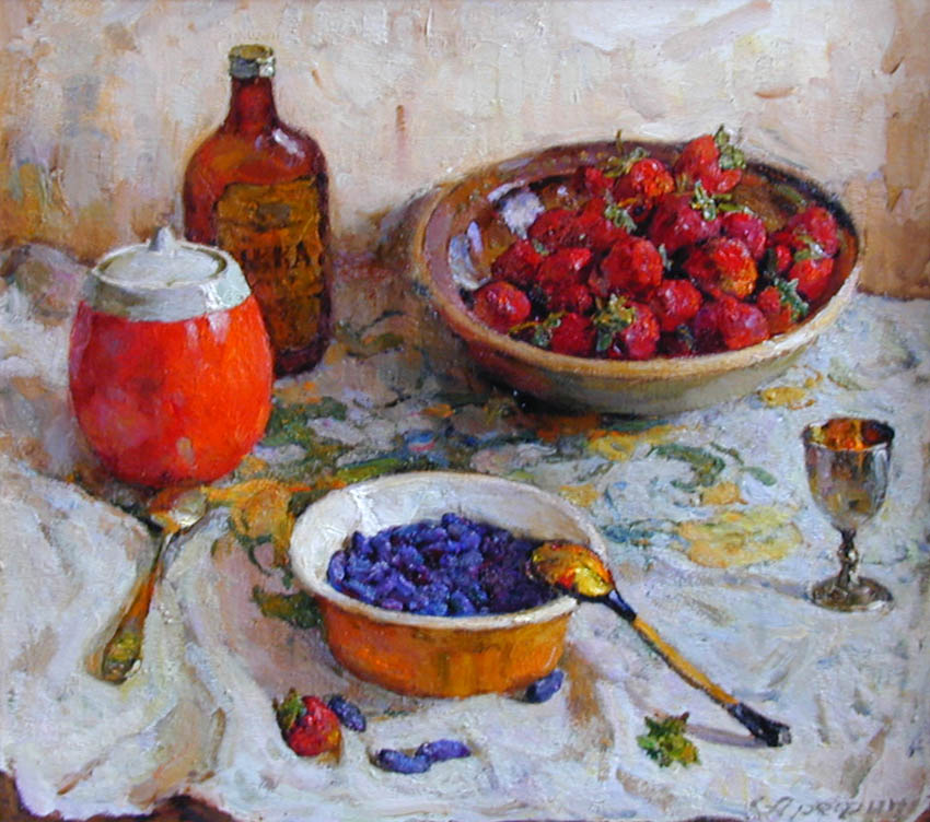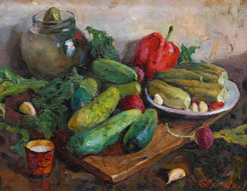 — Истосковались мы по интимному, — размышлял Степан Фёдорович. — Не случайно ведь так популярен сегодня натюрморт. Когда-то были огромные полотна — китобои, корабли в заливе, стройки века. Сейчас мы возвращаемся к живому, к природе.