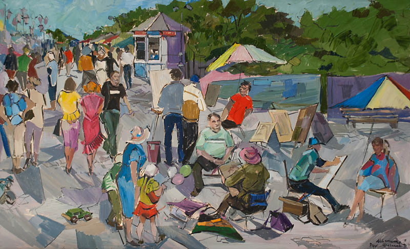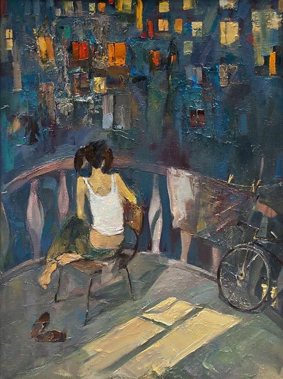 Вторая персональная выставка включала сюжетные полотна, в которых прочитывались авторские наблюдательность, умение тонко и точно подметить обстоятельства, при ближайшем рассмотрении оказывающиеся типическими. Личный интерес автора к окружающей жизни позволили появиться Герою — человеку, живущему сегодня со всеми его рефлексиями, вечными вопросами бытия, одиночеством, поиском единомышленников, мгновениями счастья.