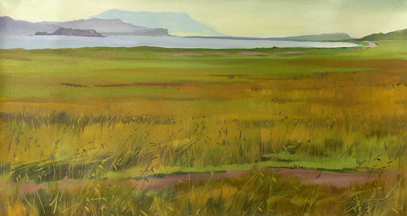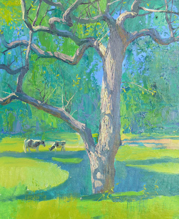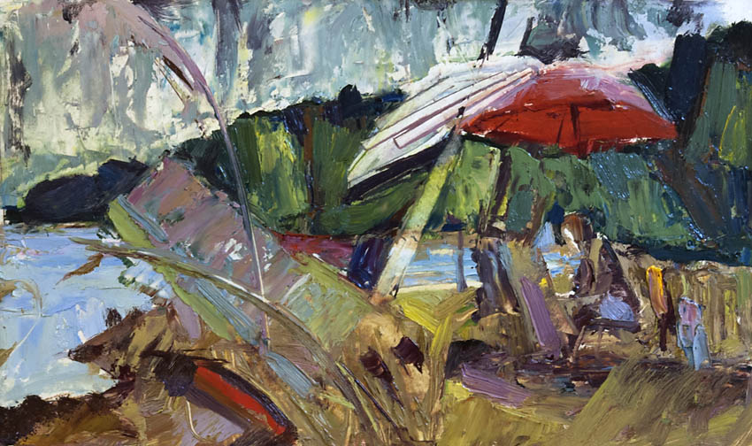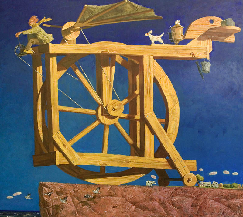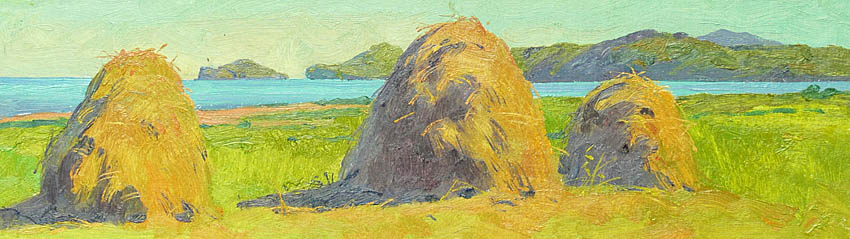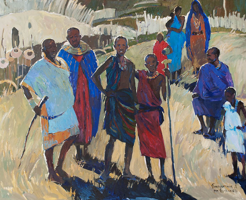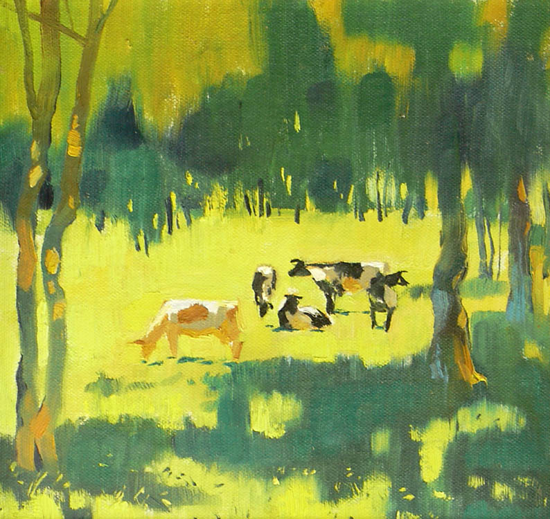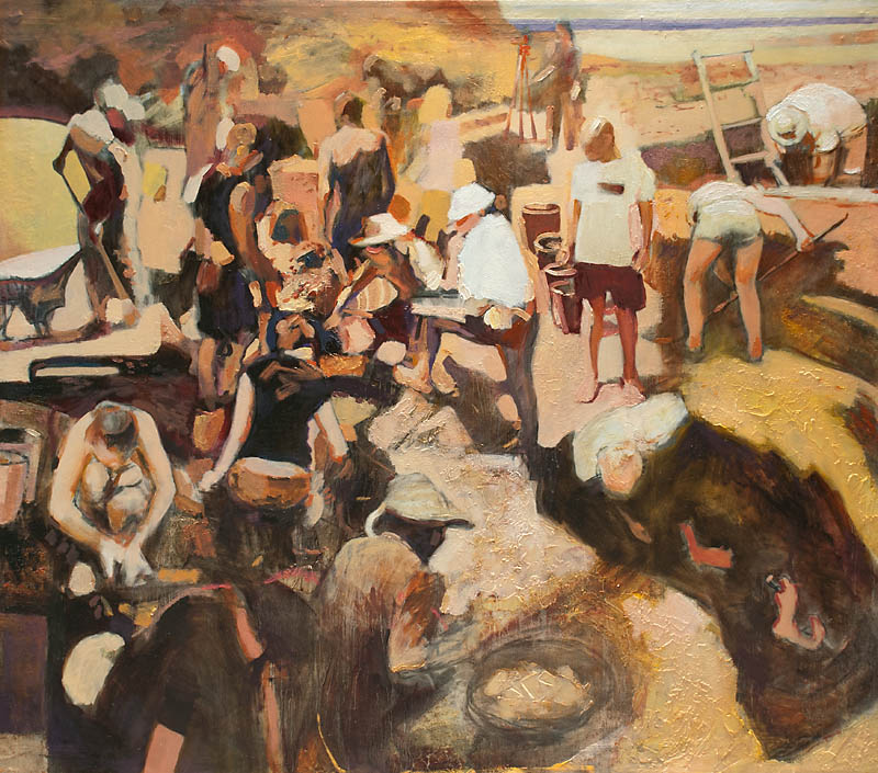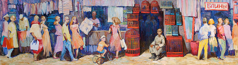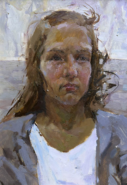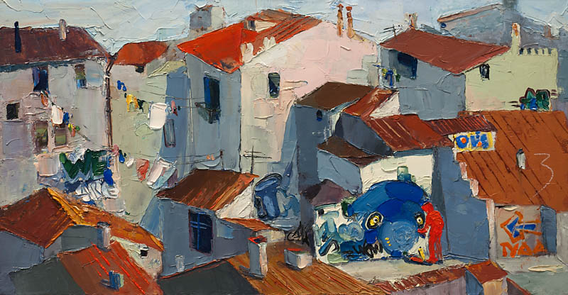 Европа Марии Холмогоровой — и канон, и оригинальная интерпретация мифа. У быка-Зевса нет золотых рогов, он не рассекает бурную воду океана, унося Европу от подруг. И жизнерадостная Европа, и Зевс, то бишь, бык, – обитатели острова Русский, излюбленного художниками места пленэров. Но при внимательном рассмотрении понимаешь, что попытка найти первооснову явно обозначена, не смотря на местный колорит. К слову, о ежегодных пленэрах: проходящие на островах близ Владивостока или непосредственно на побережье, они, как глоток свежей влаги. Моменты общения с природой, натурные наблюдения оттачивают мастерство, делают более уверенной руку художника. Тонкие по цвету этюды, натюрморты на морскую тему рождаются после таких поездок. И в этой выставке они представлены. И снова прочитывается подтекст, в котором природа выступает не только в роли копилки впечатлений, но и в роли Материи, Земли, энергией и силой которой питался Антей.
