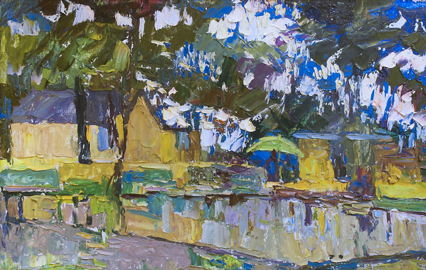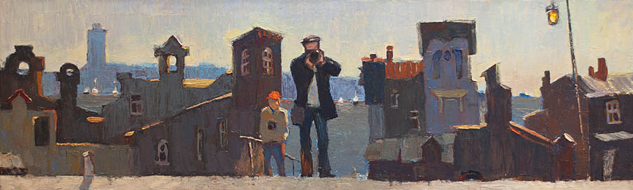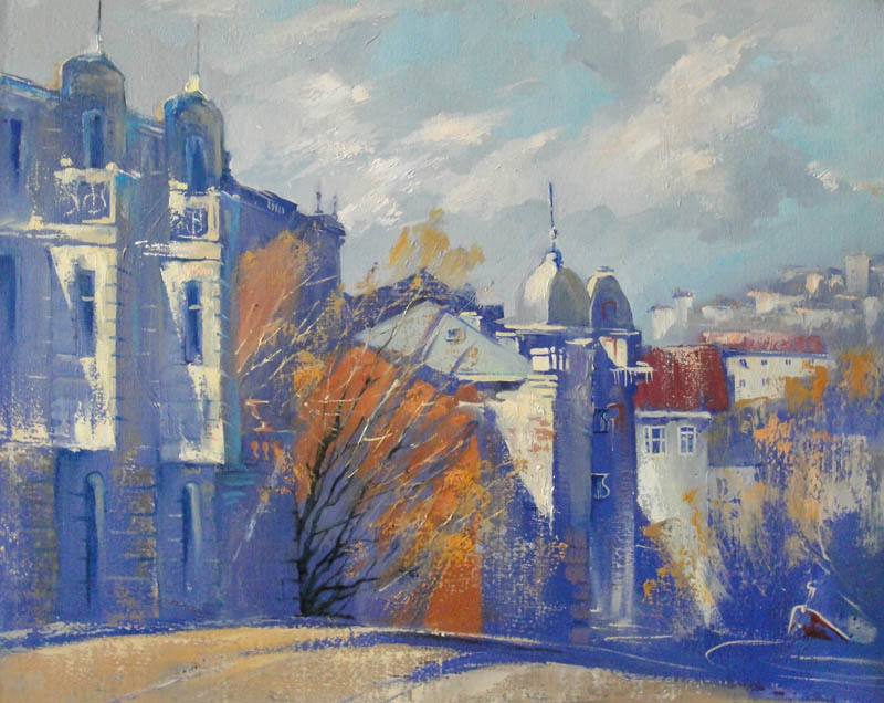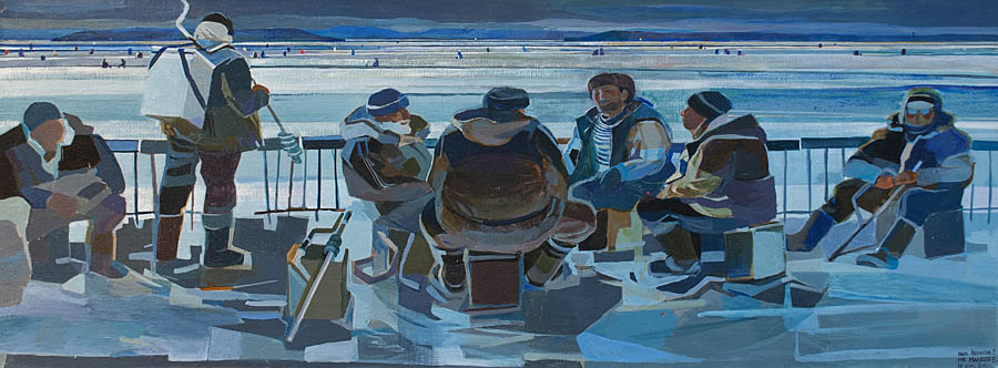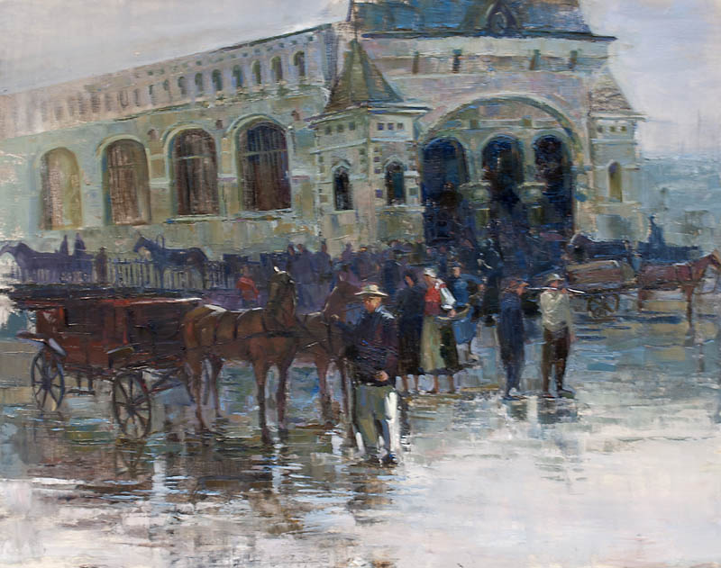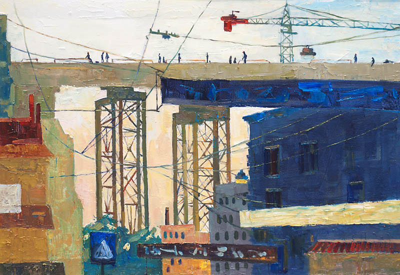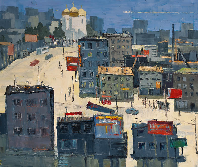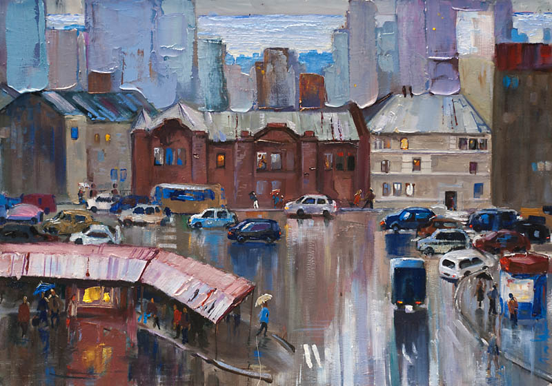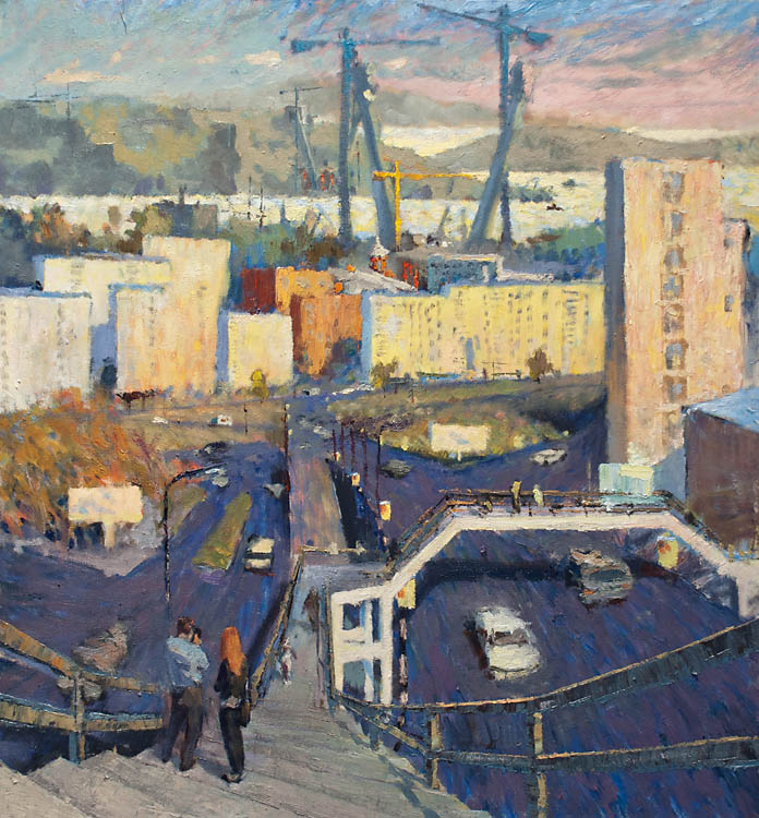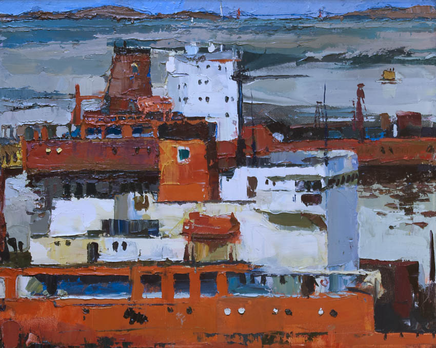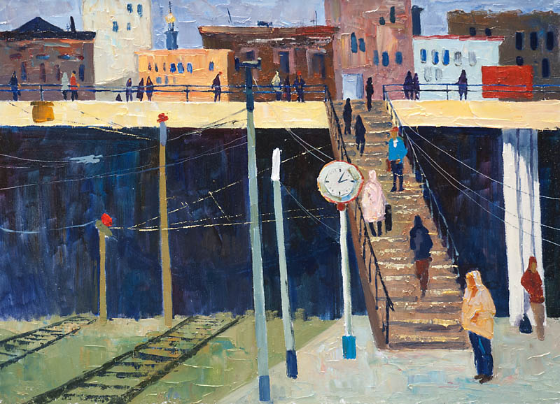 Недавно прошёл день города. Тема города не теряет своей актуальности ни в сознании простых людей, ни в сознании художников. Разные города, разные краски и техники. Художники часто экспериментируют с урбанистическим пространством. Например, у Марка Шагала город — это слияние маленького городка под Витебском и огромного Парижа. А у Бориса Кустодиева на полотнах появляется город без точного места на карте, но бесконечно близкий Поволжью, хотя сам Кустодиев жил в Санкт-Петербурге. Подобных примеров масса. Но всегда есть характерные черты, что-то, по чему мы узнаем город. В работах Виктории Косенко — все приметы города Владивостока: порт, вокзал, море, станция Моргородок, корабли, лодки, пирсы и рыбаки. Но если с пространством всё ясно, то время — явный эксперимент, оно или почти ускользает, или собирается в нечто единое, и старый и новый Владивосток вступают в диалог. Диалог продолжается и на уровне цветовой гаммы, где серый — доминанта. Он не кричит, а спокойно спрашивает. Серый цвет здесь и основной, и фоновый. На нём может яркой вспышкой расцветиться часть пейзажа, или вода утонуть в рефлексах от кораблей. Когда он основной: он убирает пестроту, даёт отдых глазу, погружает в созерцание неброской красоты. Это поэтика серого.