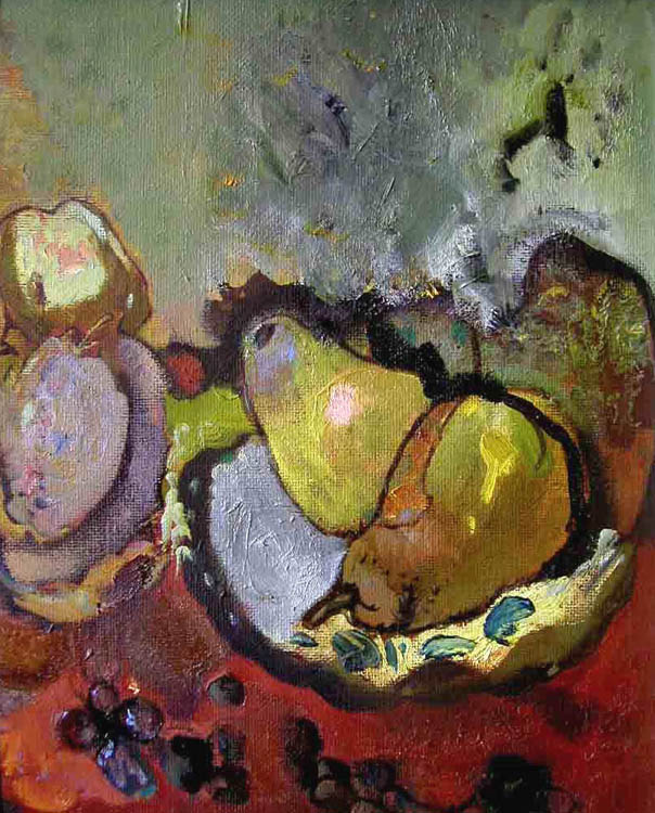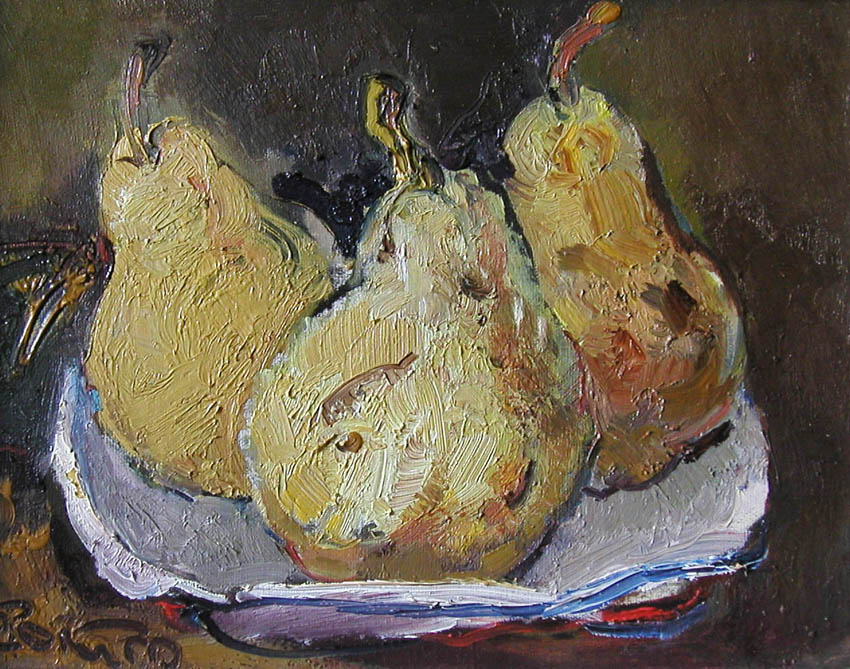Натюрморт я всегда любил, но долгое время не понимал его специфики. Этот жанр не был моим, сам я не работал в этом жанре, он казался мне слишком тонким и медитативным, а я человек непоседливый. Только сейчас, после встречи со Степаном Фёдоровичем Арефиным, когда я увидел настоящую реалистическую живопись, начал что-то понимать. Первым натюрмортом, признаюсь честно, стали «Груши», которые он подарил мне с наказом «не съесть, а написать и отчитаться». И, вот, в подражании этому большому мастеру и с его подачи, я написал первые более или менее удачные работы.
